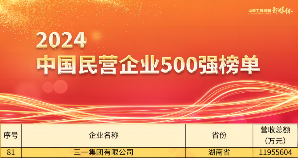 民企500強(qiáng)!三一蟬聯(lián)行業(yè)“雙冠”